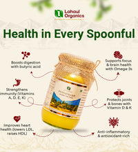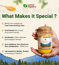 Our ghee is hand-churned by tribal women in the remote Himalayas using the ancient Bilona method, from the milk of free-grazing Himalayan cows, Small-batch, wood-fired preparation, challenging logistics, and uncompromising purity make it rare and worth the price.